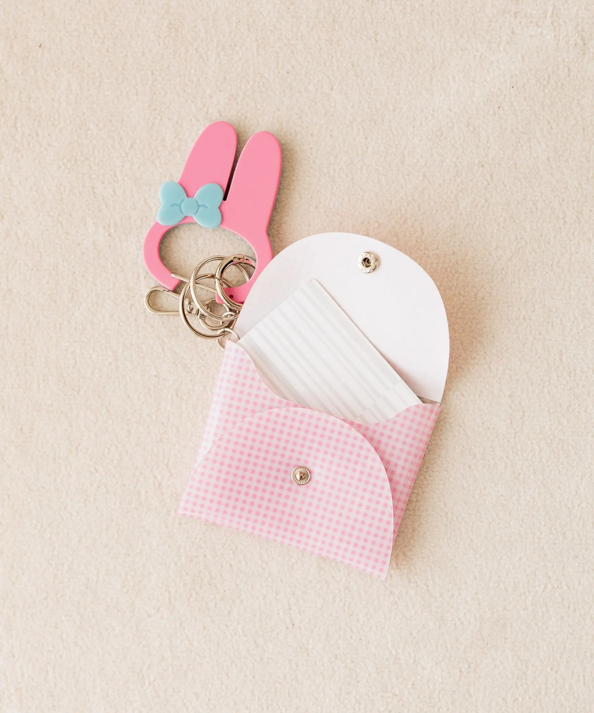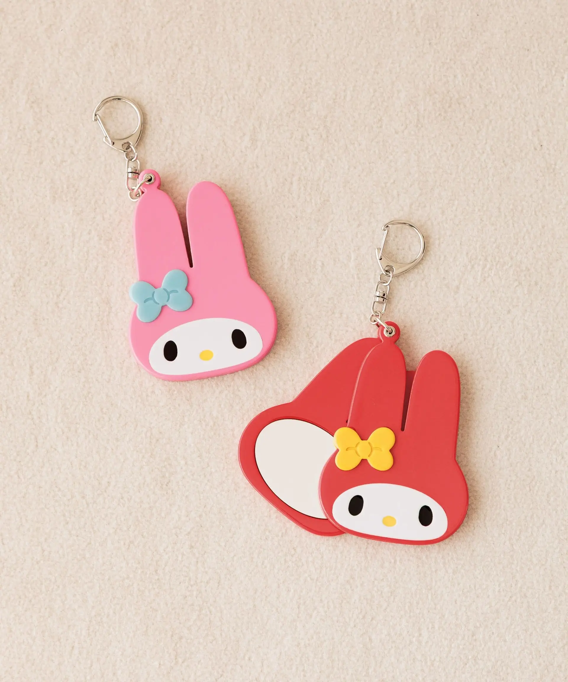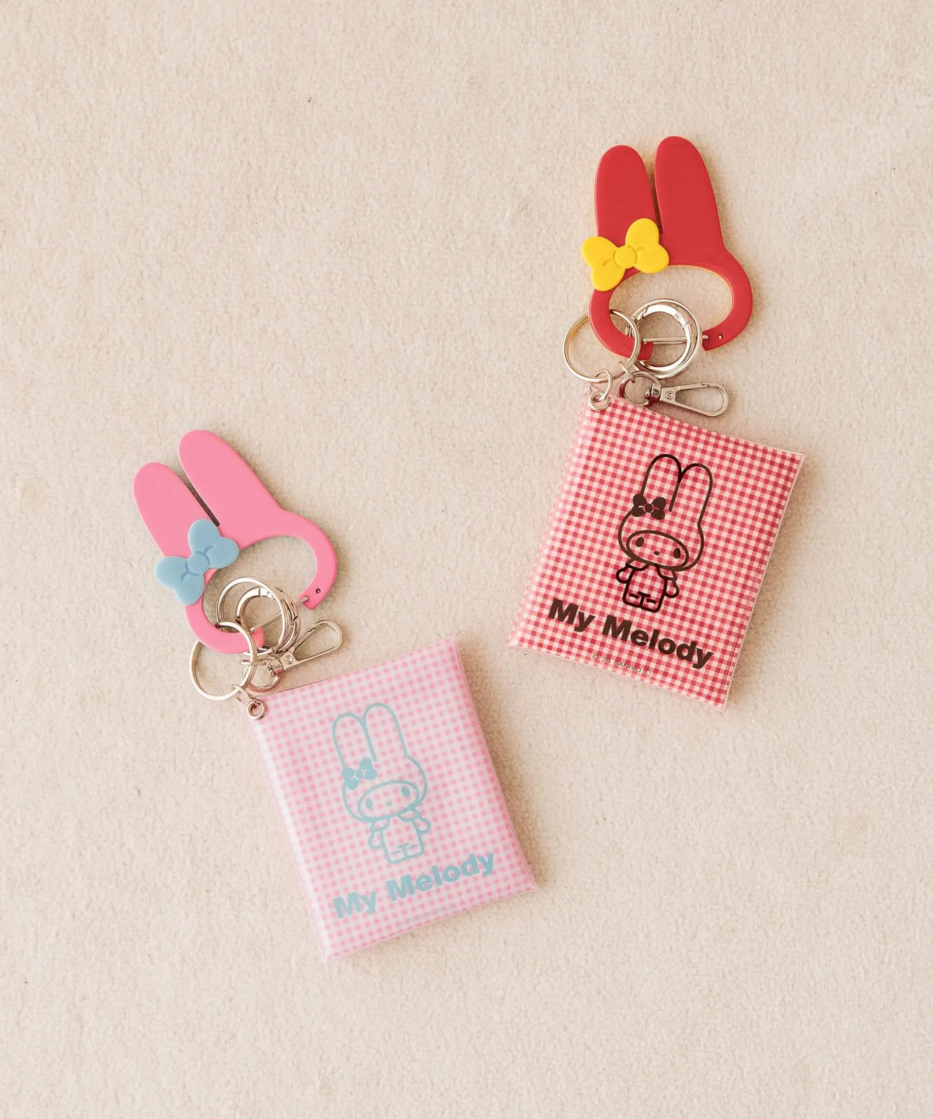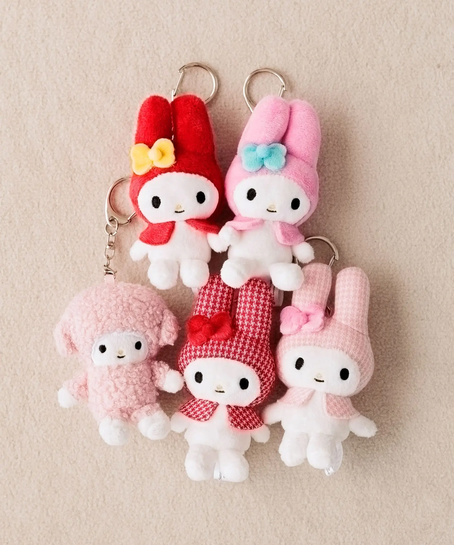 My Melody系列以其標誌性的粉紅與紅色,打造出甜美可人的單品!包括My Melody公仔掛飾,可愛的玩偶造型掛飾是手袋的最佳配飾,同樣以港幣 $199就可以入手。