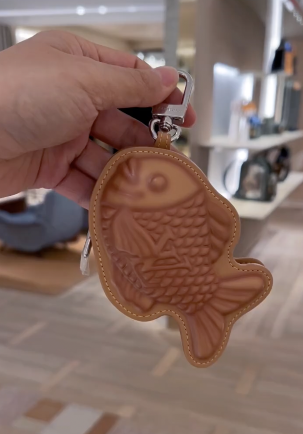 Louis Vuitton這款鯛魚燒掛飾在設計上充滿玩味心思,掛飾選用意大利皮革製作,這種皮革的焦糖色澤呈現了剛出爐鯛魚燒的酥脆質感,魚身更立體壓印出細緻魚鱗與Louis Vuitton標誌,而拉開側邊銀色拉鍊後,內裡是深紅色的內襯,神還原了經典的「紅豆內餡」設計,這種藏在細節裡的設計幽默感,真的讓人忍不住想咬一口!