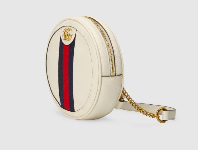 這款GUCCI的迷你背包使用了白色皮革,搭配了經典的藍紅色緞帶條紋,袋子裡有卡片夾層,雖然容量較小,但百搭好看,足以裝下女生日常需要的小物件。
