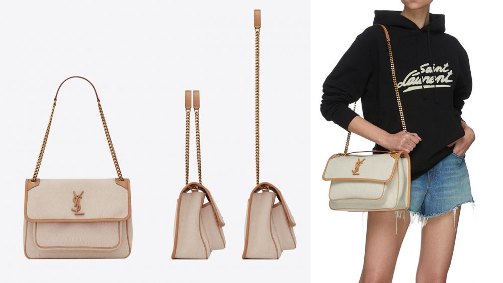 Niki Bag是Saint Laurent 創意總監Anthony Vaccarello當年入主品牌後推出的代表作,翻蓋設計結合層層分明的手袋外型,配以利落的肩帶設計,揹起來帥氣隨性。手袋尺寸為28 x 20 x 8.5cm,大容量同時十分輕盈,除了經典的單肩揹外,還可以像CHANEL的流浪包般雙肩揹,變化多端。