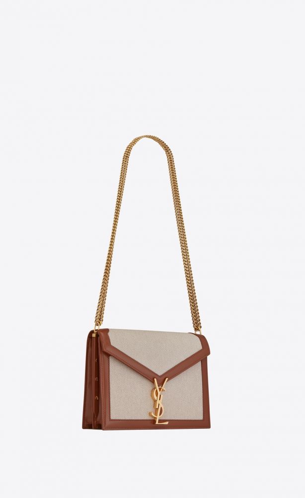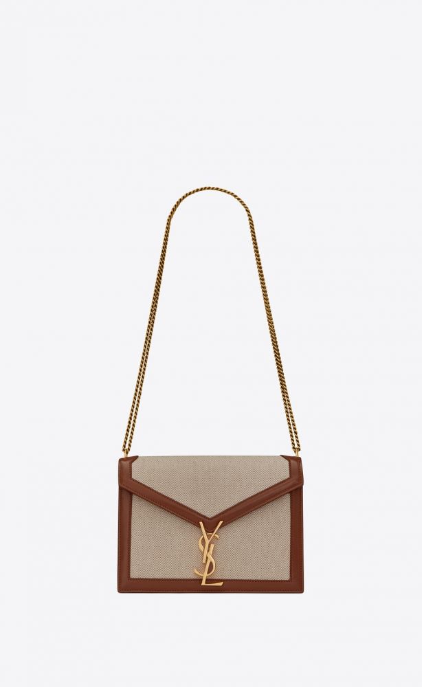Cassandra手袋採用信封型設計,線條獨特分明,翻蓋面飾有YSL旋轉鎖扣,配以皮革飾邊的帆布素材,休閒中盡現時尚魅力。手袋尺寸為22 x 16.5 x 5.5cm,容量適中,搭配充滿質感的鏈條肩帶,讓你輕鬆調節長度之餘,又能點綴秋冬造型。