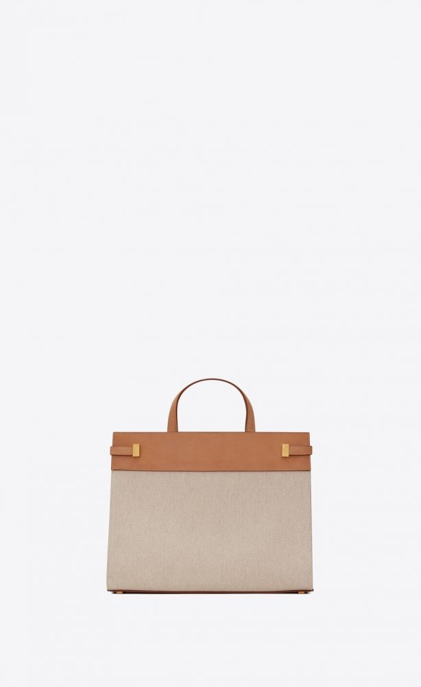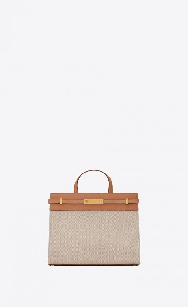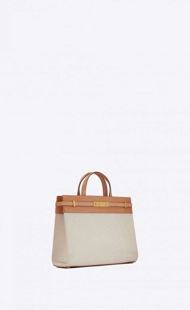 4. Manhattan Small Shopping Bag in Cotton Canvas and Vintage Leather