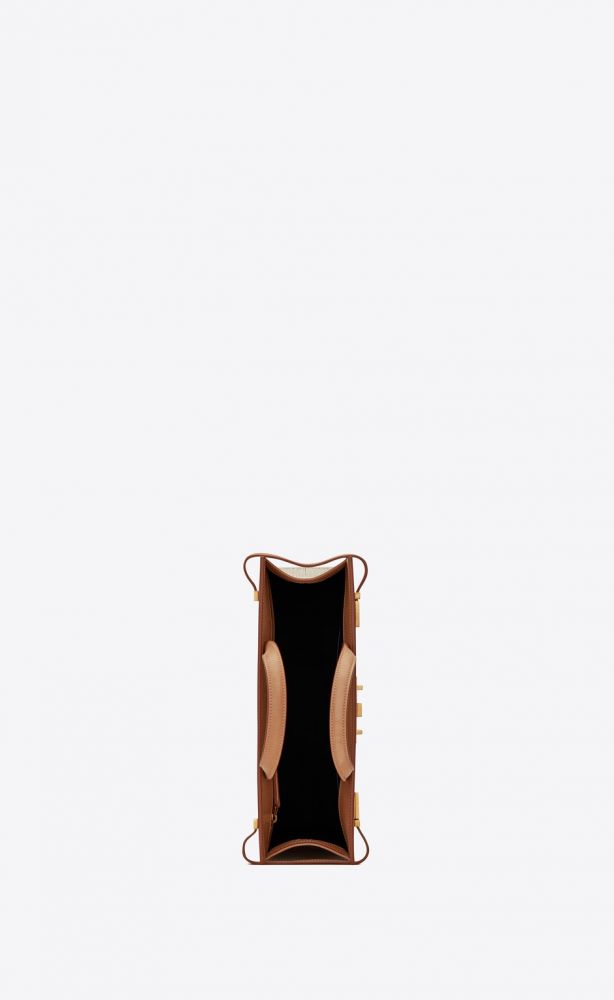 3. Small Satchel Kaia in Natural Canvas and Brown Gold Vegetal Leather
