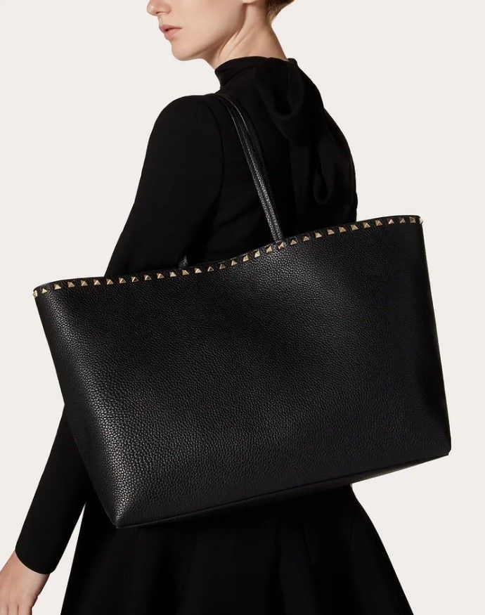 名牌Tote Bag推介6:VALENTINO LARGE GRAIN CALFSKIN LEATHER ROCKSTUD SHOPPING BAG / HK$10,600|18.9x10.1x5 cm