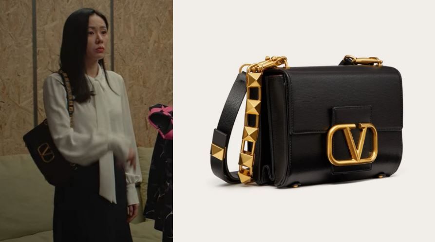 劇中的車美昭是一位皮膚科醫院院長,不論上班或是日常活動,她都喜歡攜帶 Valentino的全黑VSLING手袋。配有同色啞光手袋標誌,設計低調;黃銅色肩帶巧妙營造對比,每個細節均恰到好處,沈實中盡顯優雅。