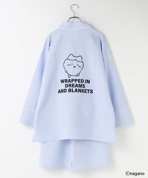 以 Chiikawa 他們「睡得香甜」的模樣為設計靈感,採用了溫柔色調的條紋和格紋圖案 。Oversize 襯衫搭配寬鬆短褲,加上不易起皺的素材,實穿度滿分 。