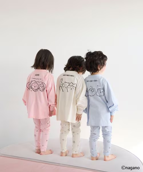 以角色們「想睡覺」的表情為圖案,採用輕盈柔軟的迷你毛圈布材質 。內裡有微起毛加工,袖口和褲腳的 荷葉邊設計 增添了大人感的可愛氣息 。
