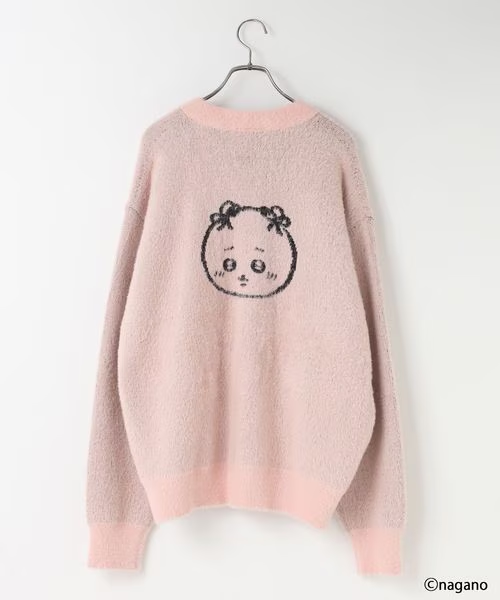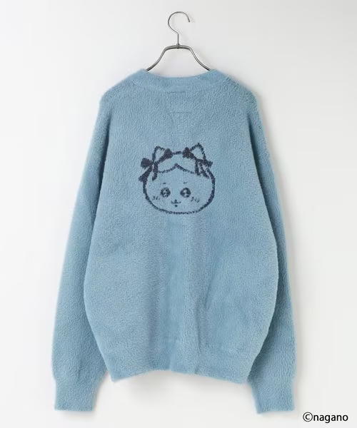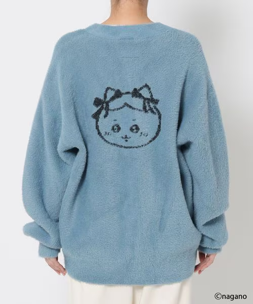 軟綿綿針織外套的背面 綁著蝴蝶結的Chiikawa與朋友們,胸口有精緻的小刺繡,質感溫暖又溫柔 。