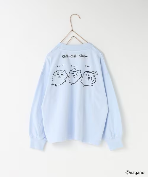 印花長袖Tee印有 Chiikawa、小八和烏薩奇三人組的插畫,寬鬆版型帶來「慵懶可愛」的氛圍 。