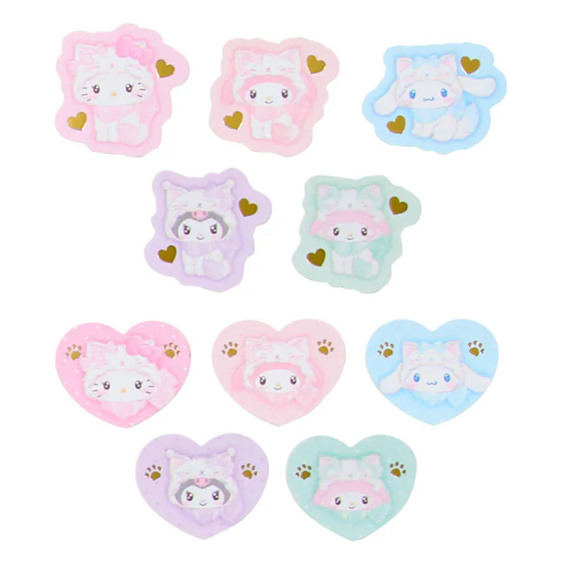 一組包含多款大頭與愛心形狀的貼紙,部分貼紙帶有燙金效果,非常精緻。官方示範可以夾在透明手機殼背面,瞬間把手機變成 Sanrio 主題 。