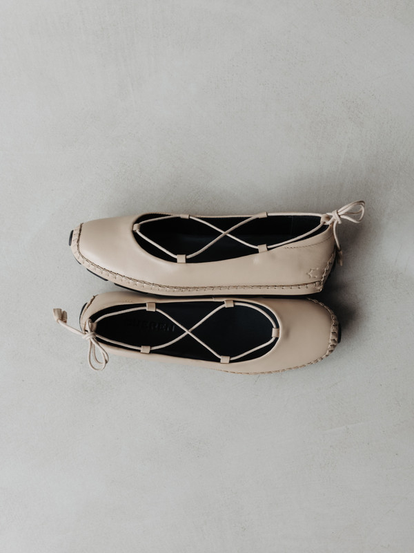 近年大熱的芭蕾舞鞋熱潮,CUEREN 都有完美演繹!Valencia 14 採用頂級柔軟牛革製作,加上超可愛的綁帶細節,充滿法式浪漫氣息。它的鞋底使用輕盈的 Driving shoes 外底,抓地力好又夠柔軟,襯裙或直腳牛仔褲都極具仙氣!