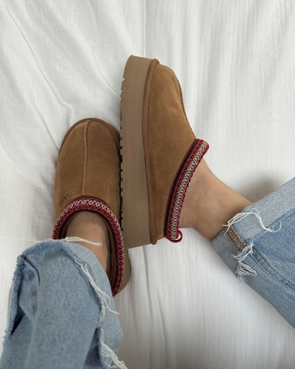 UGG雪靴向來廣受女生歡迎,而Tasman穆勒鞋今季則是最受歡迎的款式之一!它採用絨面革製成,裡面是超溫暖的毛絨羊毛內襯,鞋口還飾有可愛的刺繡裝飾!這個設計能夠完整露出腳踝,非常適合不想顯腿粗、顯腿短或有粗腿問題的女生們穿着。