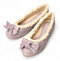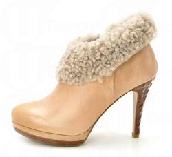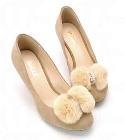 毛毛內里蝴蝶結平底鞋 $868 羊毛靴筒配杏色牛皮高跟鞋 $1,398
