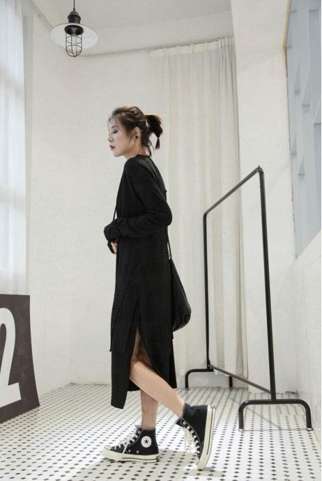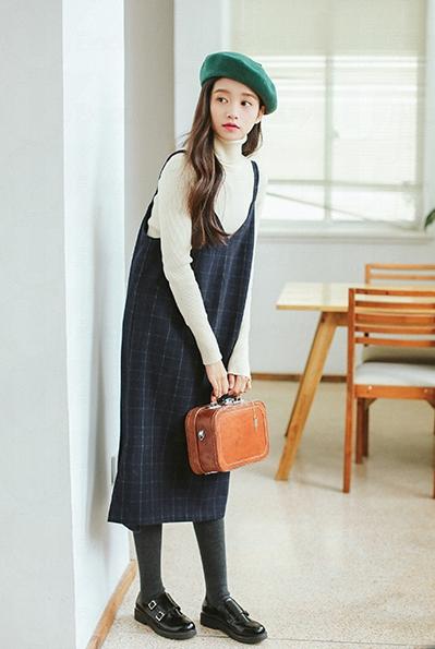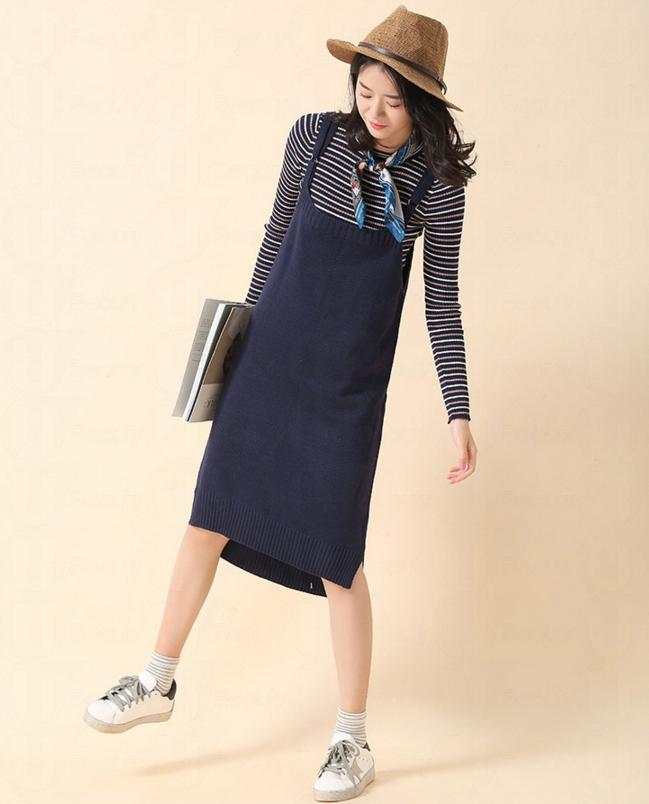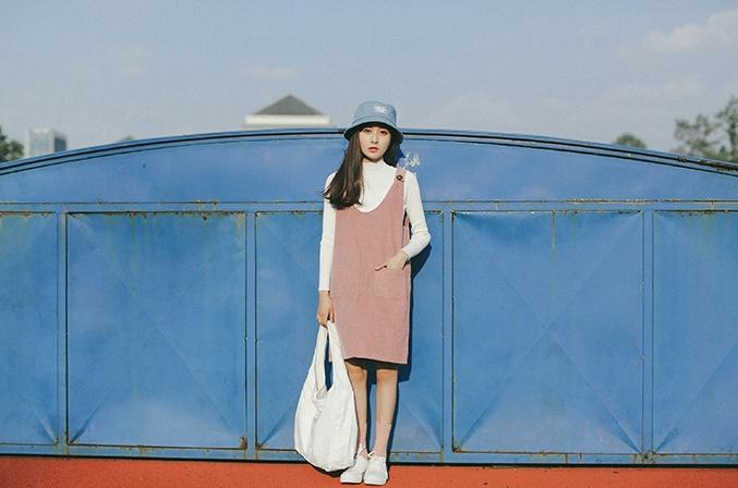 長袖Tee外加配一條背心裙是今年大熱穿搭啊!