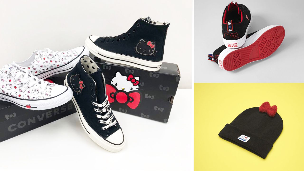 Converse再度與Hello Kitty合作,推出全新聯乘系列。系列包括鞋款及服裝配飾。高筒和低筒鞋款用上黑白底色,結合可愛風。細節位加入Hello Kitty蝴蝶結的元素,當然不少得Hello Kitty的卡通圖案。服裝配飾包括衛T恤、帽子等,滿滿都是Hello Kitty。