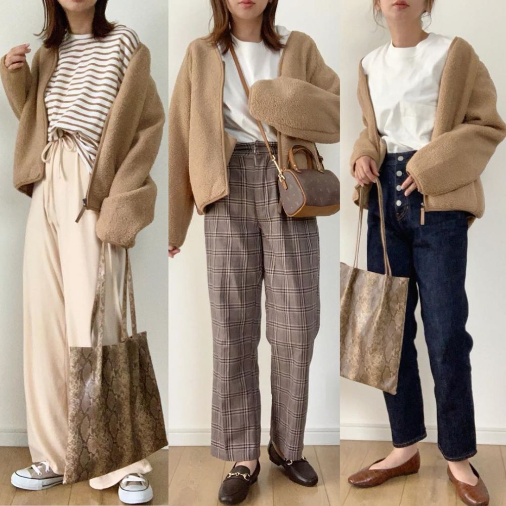 搖粒絨款式的外套近年在日本悄悄流行起來,是每個日本女生衣櫃中必備的單品。它既防風又保暖,十分百搭易襯。除了配搭Tee外,衛衣也是一個不錯的選擇。