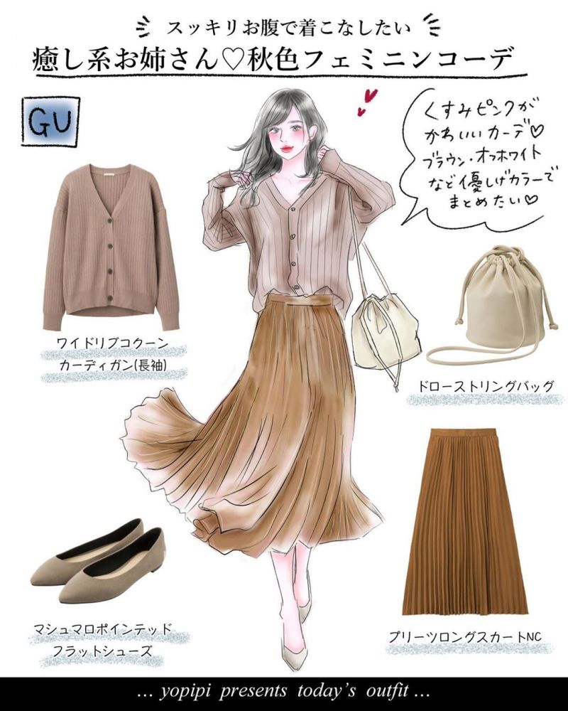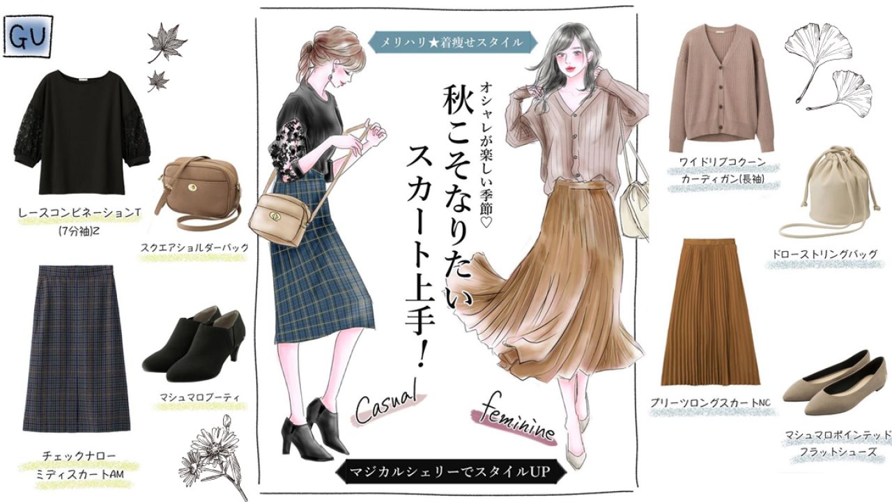 說到下盆大,相信這是不少女生的煩惱!窄身牛仔褲、短褲、魚尾裙等突顯下盆的單品一律不穿,總覺得寬褲、長裙才是你的好朋友。日本時尚插畫達人yopi(よぴ)自從4年前產後致下盆變大,一直對下半身缺乏自信。減不去的骨盆,惟有靠穿搭幫忙!她精選GU單品進行配搭,分成Casual(休閒風)和Feminine(女性化)兩類,並將秋季元素融入裙子穿搭中,看看有沒有你喜歡的穿搭提案吧!