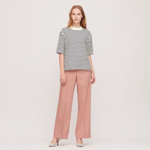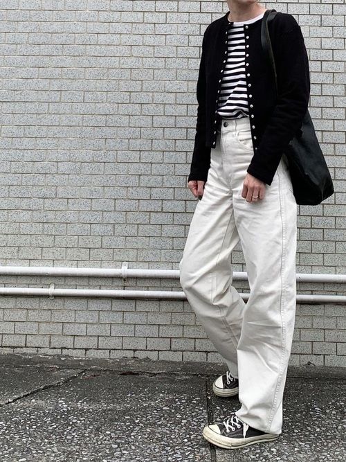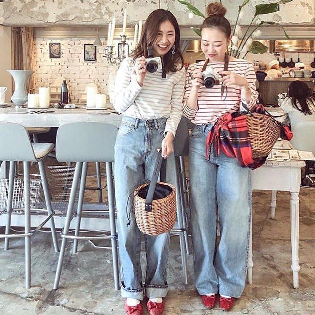 不少日本女生都喜歡看起來較高雅的深藍色牛仔褲,想增添新鮮感,可以選擇反褶褲管,搭配有設計感的上衣,或不敗的間條上衣,瞬間完成出遊造型。不需要技巧就能很有型,盤起頭髮,更顯利落感。