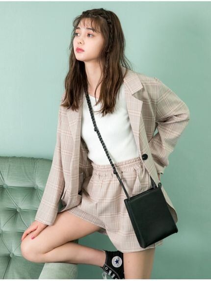 格紋外套+短褲 套裝 (原價港幣$568.06,折後$ 340.81)