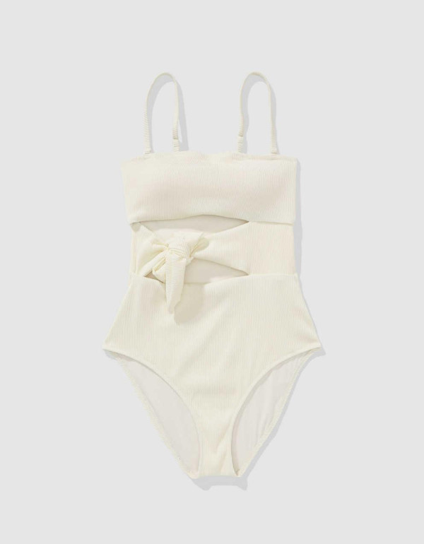 連身泳衣推薦|1.Aerie 羅紋包裹領帶一件式