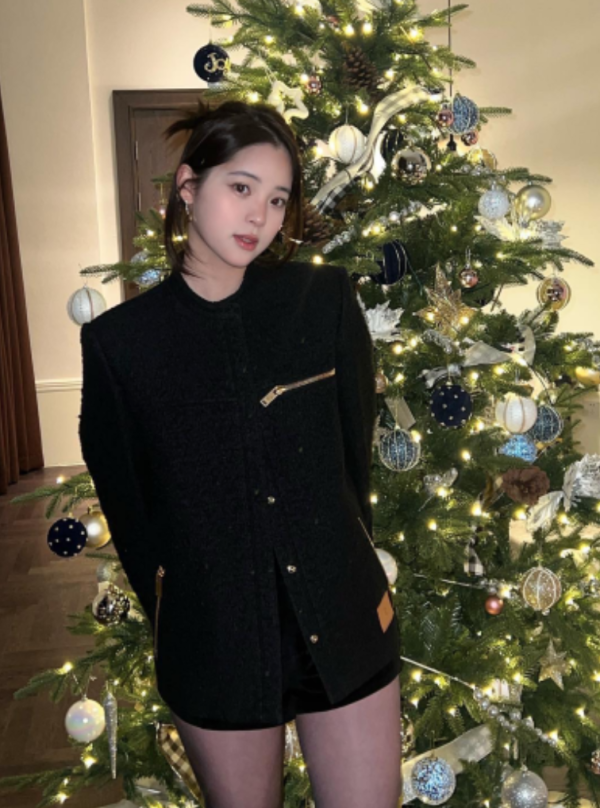 歐陽娜娜完美示範了兩種截然不同的聖誕穿搭風格!其中一套她身穿藍白條紋並結合紅色小花圖案的毛衣,再搭配一頂標配聖誕帽,展現出俏皮可愛的氣質,站在聖誕樹旁拍照直接將氛圍感拉滿。另一套則以一身黑為裝扮,而外套上的金色拉鍊及鈕扣也意外成為點睛之筆,經典的黑金配色更顯優雅成熟。