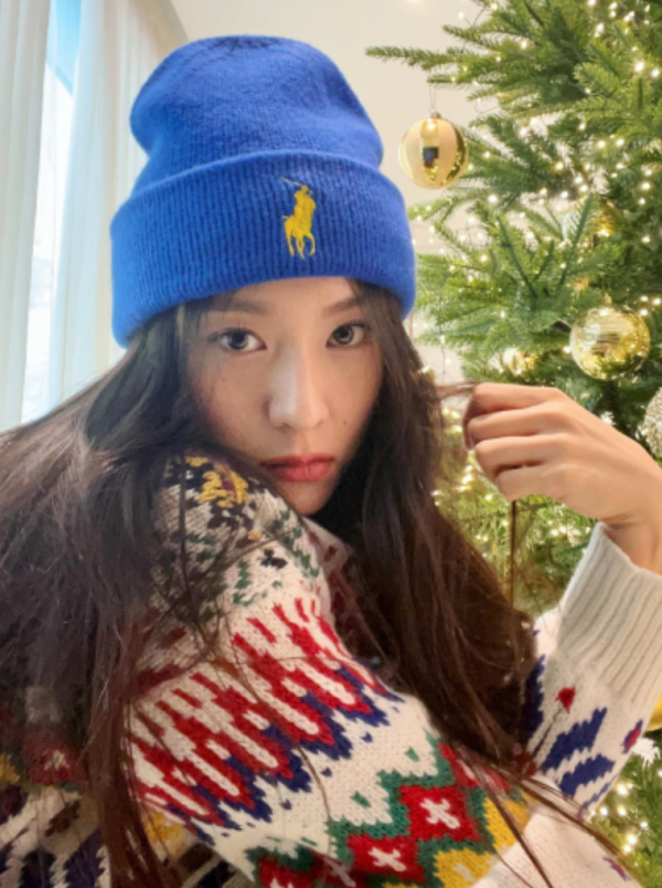 每一年都會過聖誕的Krystal,多半以五彩繽紛的圖形設計毛衣為穿搭,同樣跳脫一般人的紅綠色彩,展現出她獨有的老錢風氣質。她還會利用各種顏色的毛帽來點綴,除了增添氛圍感,也有達到修飾臉型的效果,同時還具保暖作用!