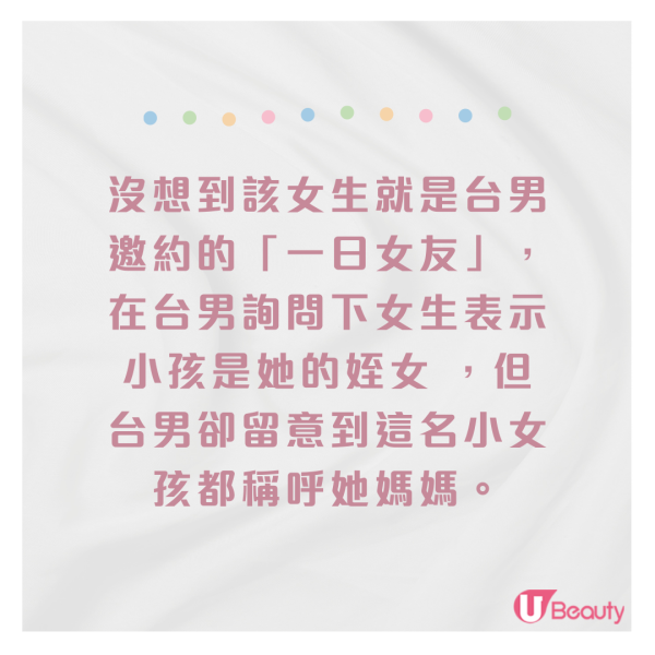 一名台男在討論區Dcard發文訴說自己的悲慘遭遇,該台男是位單身男生,由於「想找女生一起手牽手去聖誕城」,便在聖誕節的兩星期前決定網上找「一日女友(PTGF)」,更揚言打算「花錢買快樂」。