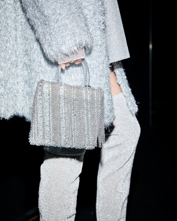 系列WIREBAG將Wire混合閃亮紗線和金屬感eco-fur,打造出新科技面料,呼應「數碼時代的優雅」 (Digital Elegance) 的主題。