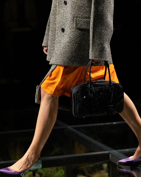 Prada的2024秋冬時裝大秀回歸米蘭,創意總監Miuccia Prada和Raf Simons今季靈感來自航空和航海,更以大自然元素打造時裝秀台地板,宛如一個秘密花園,Somi、Emma Watson等名人都有出席。今季多款單品滿佈絲帶,剪裁依然俐落簡約,令人眼前一亮。