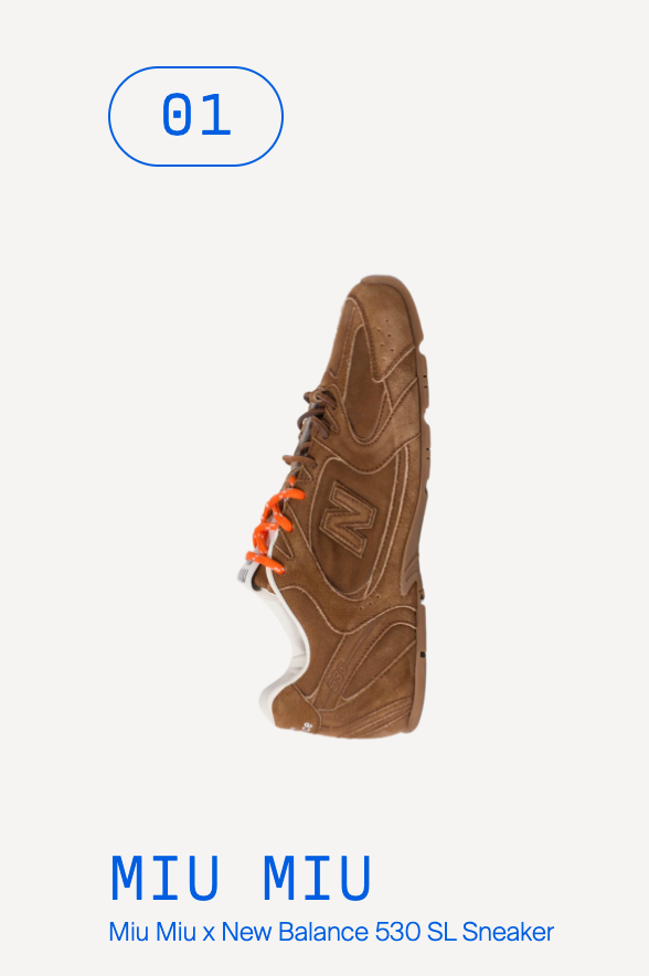 奪得今年冠軍是Miu Miu x New Balance「530 SL」 聯名球鞋,結果令人毫不意外!三度攜手合作的Miu Miu和New Balance,今次設計融合了Miu Miu的女孩風格和New Balance的運動元素,既時尚又舒適,廣受男女喜愛。而同樣來自Miu Miu的三角泳褲和Polo衫,也成功入榜,分別佔第3和第7位,彰顯了品牌在本季的強勢表現。