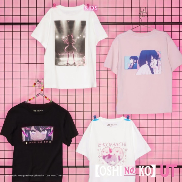 【我推的孩子】最初連載於集英社《週刊YOUNG JUMP》,並於2023年動畫化,一經推出便因其出人意料的劇情反轉及夢幻與暗黑交織的風格,在全球掀起熱潮。隨著第二季動畫即將上映,UNIQLO以人氣角色星野愛、雙胞胎露比及阿奎亞為中心,推出充滿可愛與黑暗世界觀的UT系列,粉絲們絕對不容錯過!