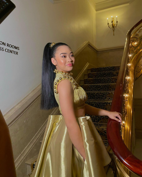 東京奧體操金牌得主Suni Lee是第一位參加奧運會的苗族裔美國人體操運動員,在2021年Met Gala上,她身穿Sukeina為她量身打造的金色露腰拖尾禮服亮相,設計簡潔卻不失亮點,充分展現了她的自信與活力。然後在2022年ESPY頒獎典禮上,她又身穿了吊帶閃亮連身裙,十分優雅。