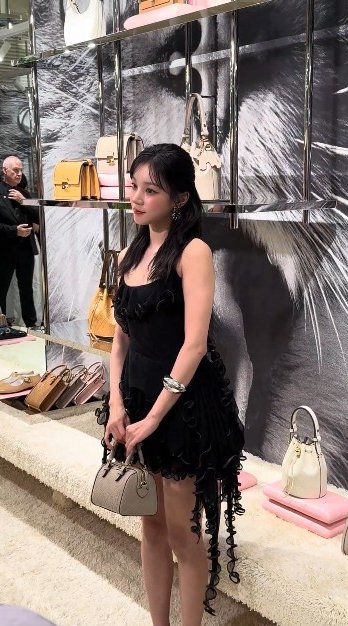 早前來港舉行(G)I-DLE世界巡迴演唱會的宋雨琦在結束一連3場的香港演唱會後沒有隨成員返韓,今日驚喜現身中環出席TORY BURCH 置地廣塲期間限定店,身穿2024秋冬系列黑色吊帶小禮服的雨琦配搭品牌monogram手袋現身,大騷性感鎖骨及美腿外,長捲髮的髮型以及十分有層次感的小黑裙都為她的造型增添幾分可愛,與雨琦日常可型格、可性感、可甜美的氣質風格十分相襯,網民都大派心心emoji更留言「雨琦太美了」、「雨琦好可愛」!