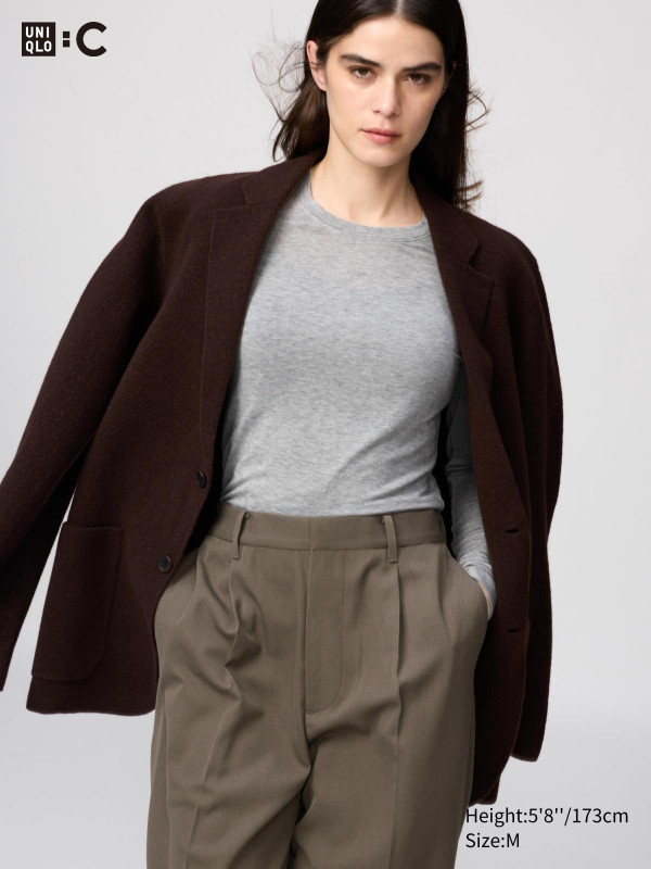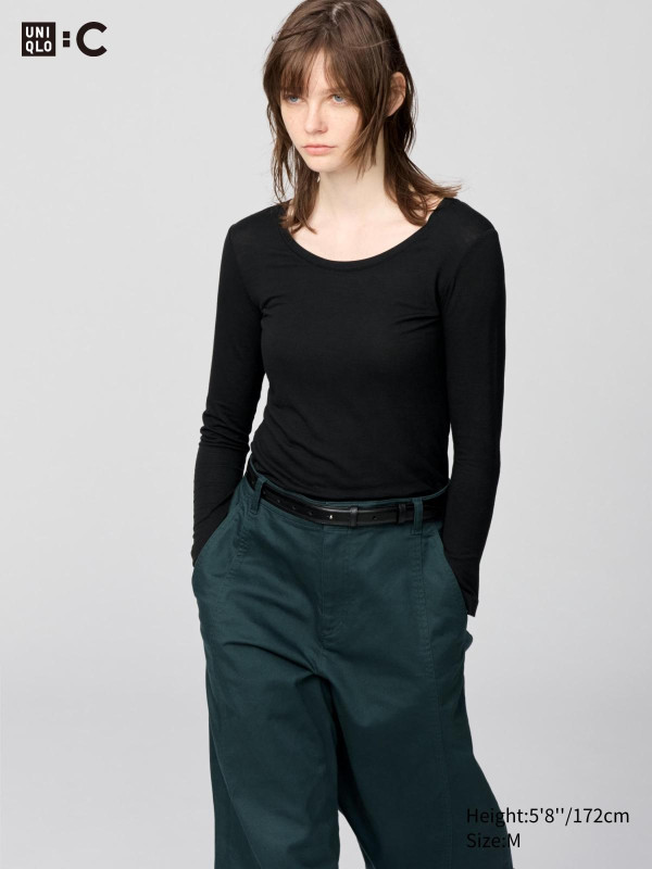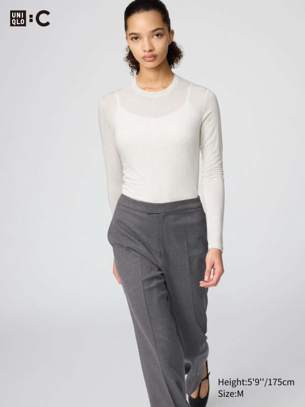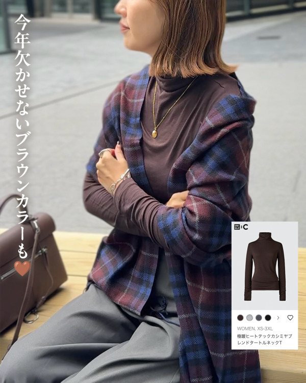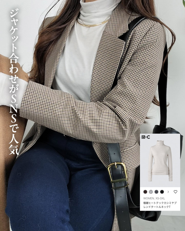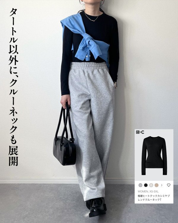 UNIQLO:C 系列今年加入羊絨混紡(Cashmere 茄士咩)材質,打破傳統厚重發熱衣的印象。日本女生大推這款的原因是它輕盈卻能保暖,而且帶有微微的透膚感,不但適合單穿,還能輕鬆搭配寬鬆衛衣或V領上衣,打造豐富的層次感!