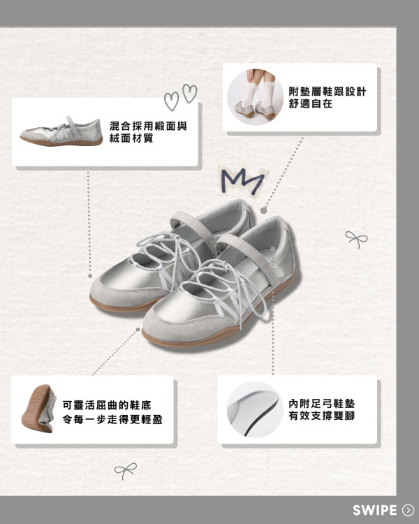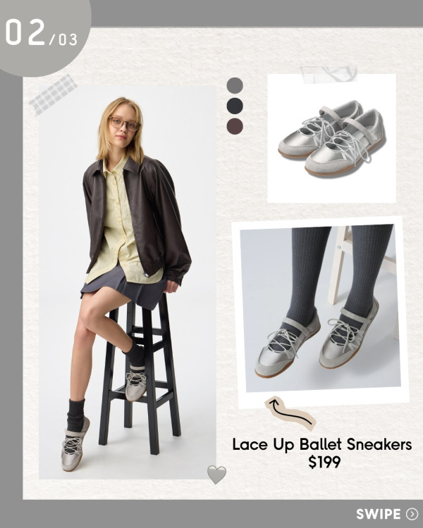 不少韓星都熱愛打扮Balletcore風格的穿搭,如Jennie、Rosé、韓韶禧等人都曾穿上芭蕾舞鞋,去年至今仍然是大熱的芭蕾舞鞋,不少人氣品牌均有推出不同款式的芭蕾舞鞋,如Rockfish Weatherwear、PUMA等。而GU推出的芭蕾舞鞋就是各大品牌之中的平替版!只須$149就可以入手銀色、黑色或深啡色的綁帶芭蕾舞鞋,打造你的Balletcore風格穿搭。