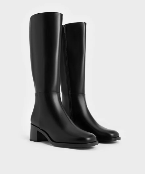 CHARLES & KEITH Louise 及膝粗跟靴 - 黑色