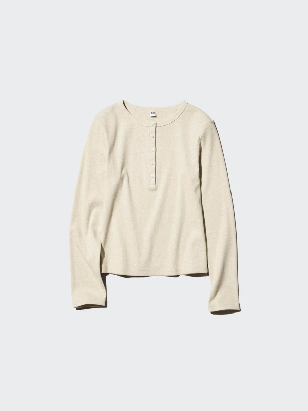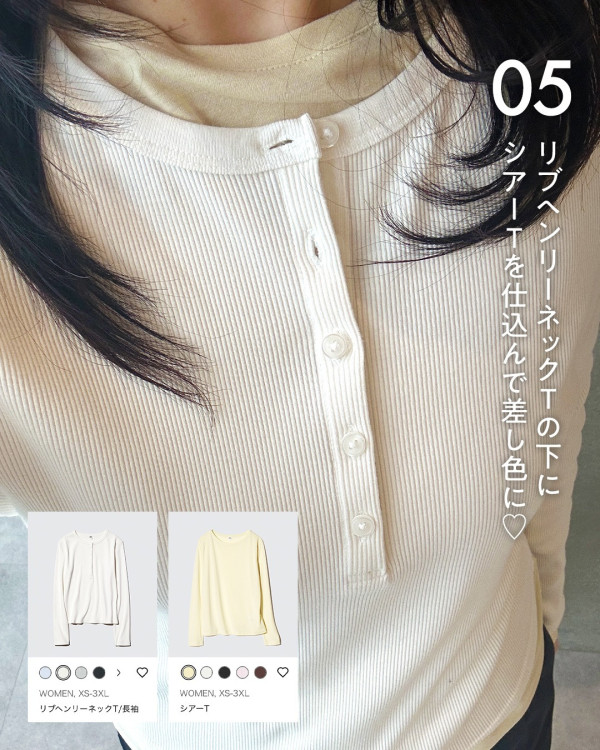 UNIQLO疊穿公式 5:羅紋亨利領 x 透膚 T 恤