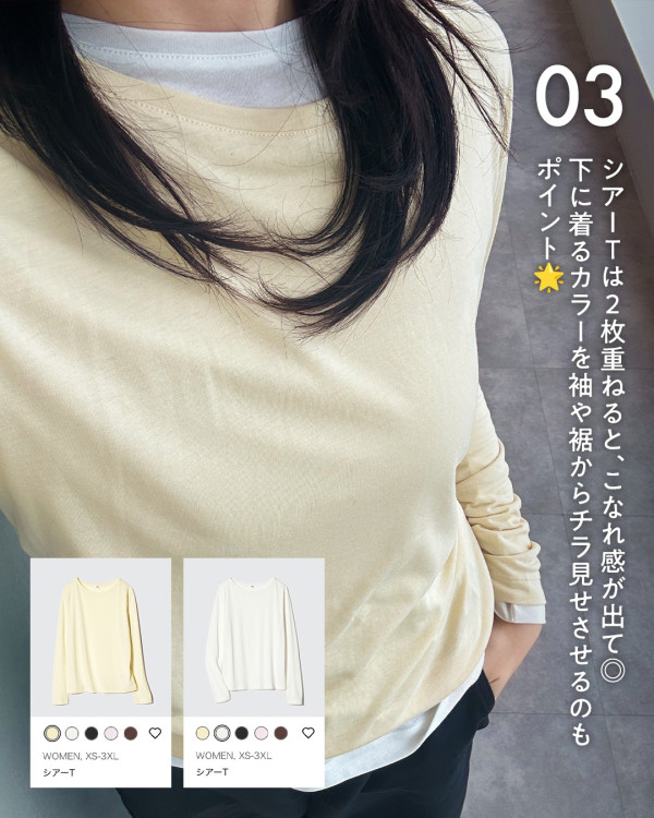 UNIQLO疊穿公式 3:透膚 T 恤 x 透膚 T 恤(微透視感)