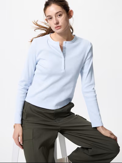 穿搭單品:女裝 羅紋鈕扣領 T 恤 (長袖)