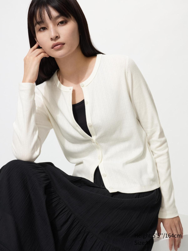 UNIQLO疊穿公式 6:透孔針織外套 x 白色內搭
