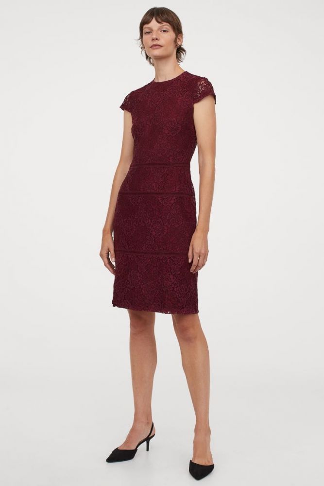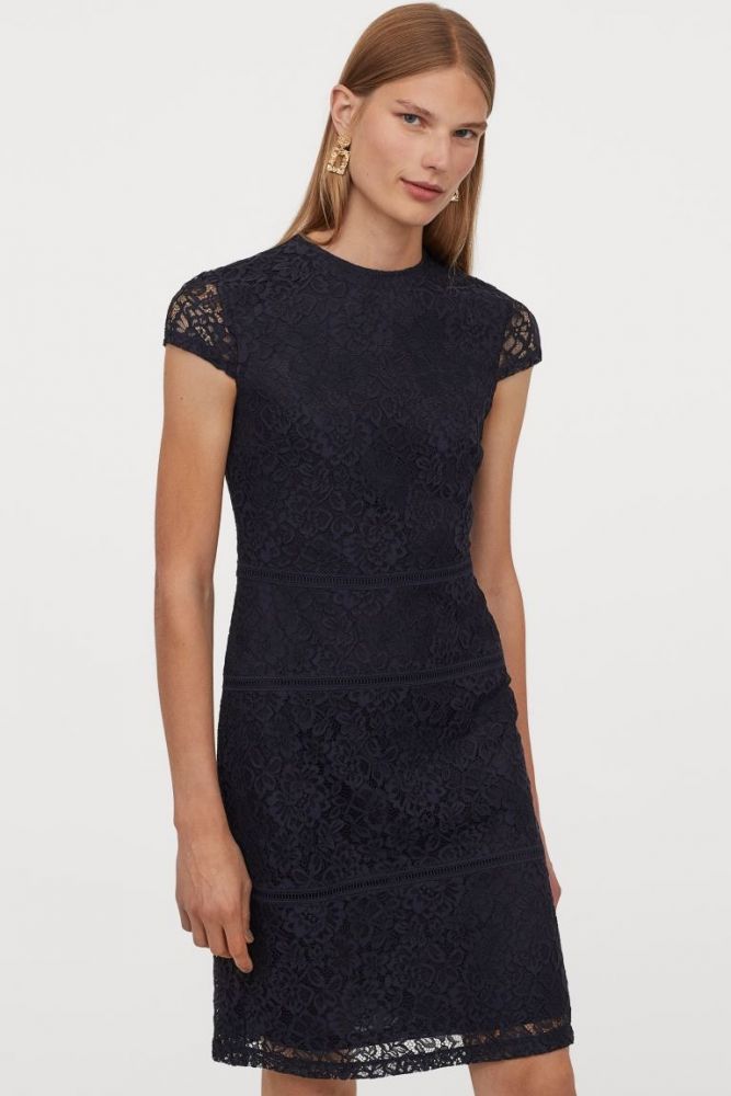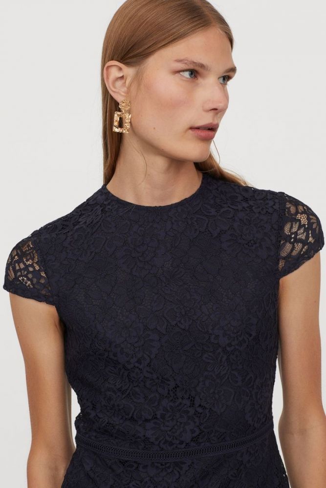 蕾絲連身裙屬貼身剪裁,能突顯身體的線條,而花紋若隱若現,靠近便會看到其細節的地方。