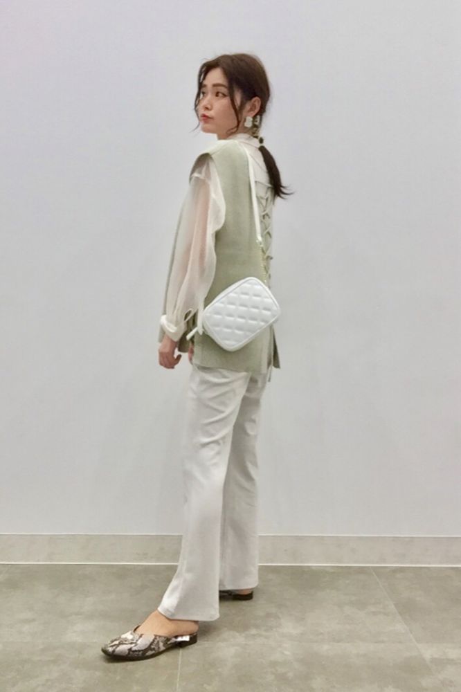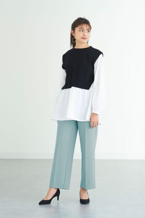 俐落襯衫X垂墜喇叭褲 (Cut-and-sew color flare slacks ¥1,990)