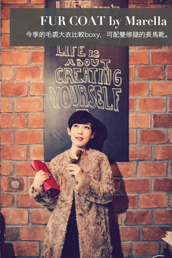RULE #9: 穿厚fur時要混搭緊身的裝束。今季的毛裘大衣比較boxy,可配雙修腿的長馬靴。