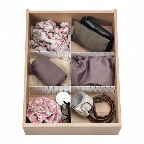 除了膠籃,我們可以使用較軟身的抽屜間隔,以不同間隔來放置內衣、內褲及襪子。