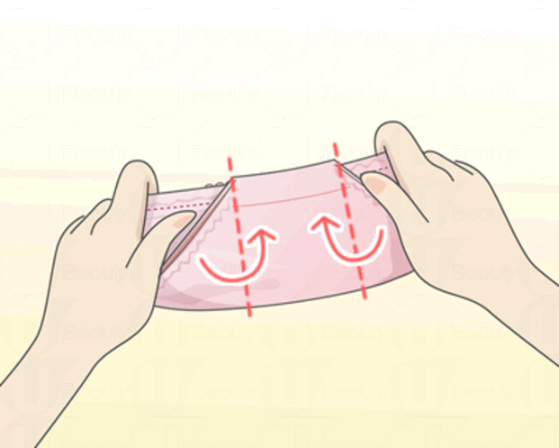 2. 對摺後,將內褲的左右兩邊向中間位置摺。