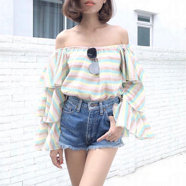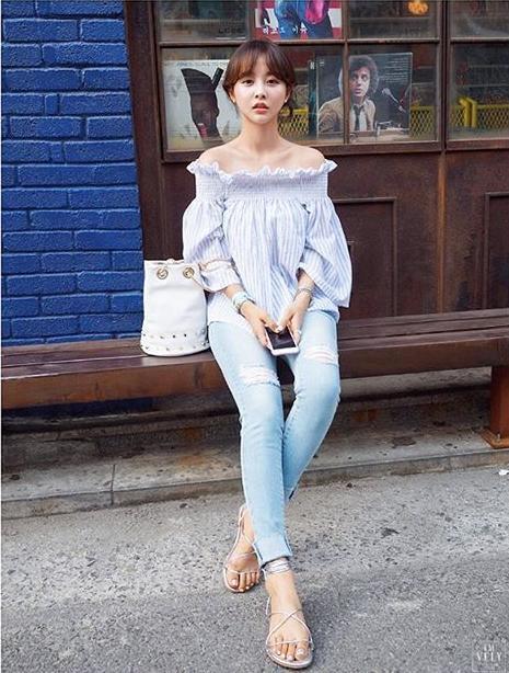 一字肩上衣配短褲、短裙是比較青春,而且較小機會出錯的襯法。首先,配牛仔褲、牛仔裙是100%穩陣之選,基本上怎樣都會搭。再大膽一點的,可選配淺色系的褲款、網球裙、A字裙亦可。