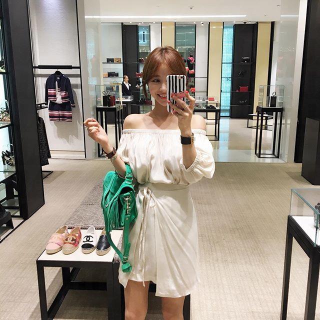 露肩連衣裙款最適合懶人,因為幾乎不需思考怎樣搭配,只須選擇配襯的鞋款即可。如果想突顯高貴的話可選高跟鞋或羅馬鞋;想休閒一點的話配襯普通涼鞋或小白鞋就可以了。