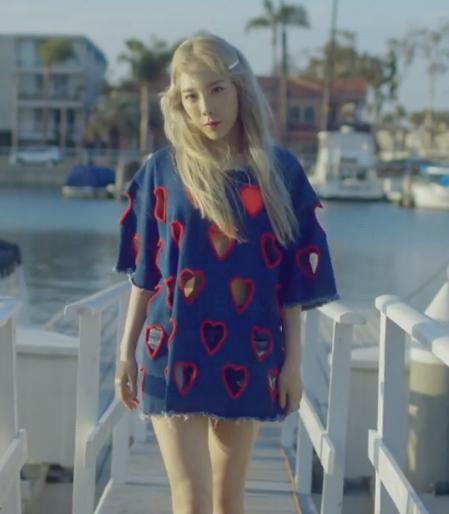 太妍嬌小的身型穿起Oversize上衣非常合適,除了能展現美腿外,寬鬆的剪裁令身型顯得更纖幼;她更大膽地穿上破洞設計的衣服,展現出夏日休閒性感風。