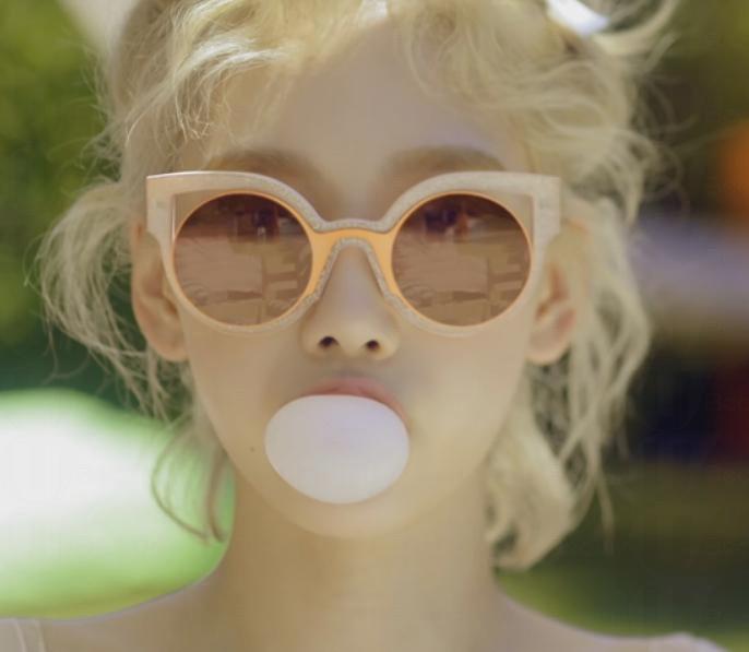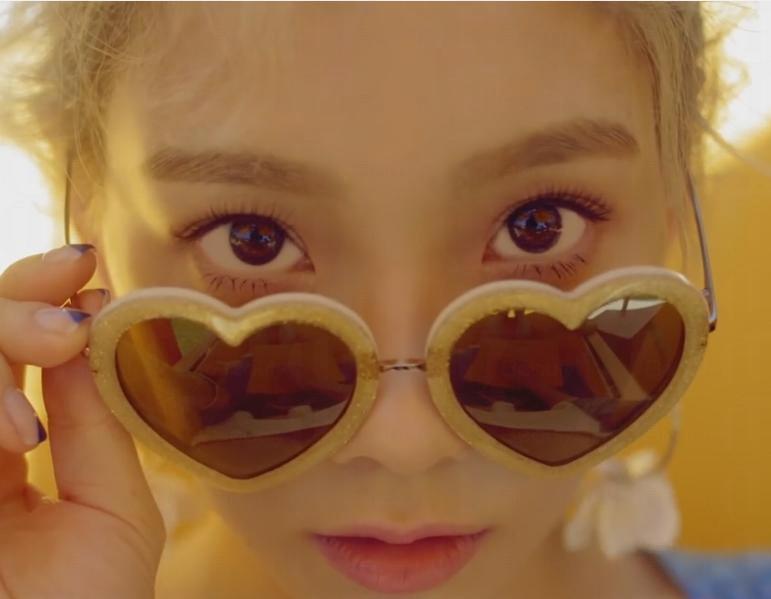 太陽眼鏡可以說是夏日的必備之選,不想選擇平實的款式,可以學習太妍戴上心形或貓眼設計的寬邊鏡框,加入青春活潑的元素。